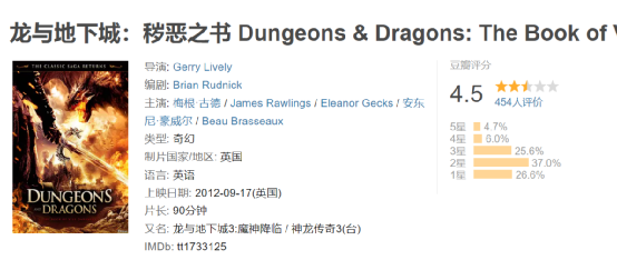 在影视化的道路上,早在1983年《龙与地下城》就出过动画剧,到了2000年,美国新线电影公司(代表作《指环王》系列)拍摄了真人电影《龙与地下城》,后来又推出两部续作,但这三部影片的豆瓣评分均在6分以下。