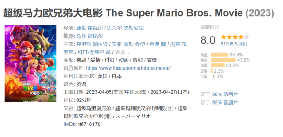 游戏改编魔咒被破除了?几十年来,游戏改编电影一直存在着一个“魔咒”,游戏改编电影常常遭到观众和评论家的反对。截至2023年4月,只有六部游戏改编的全球票房超过4亿美元,《魔兽》、《神探皮卡丘》、《超级马力欧兄弟大电影》、《刺猬索尼克2》、《神秘海域》、《狂暴巨兽》。