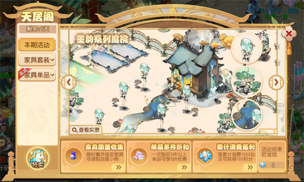 同时,天居阁家具商城也推出了流星和墨韵系列家具的限时优惠活动!喜爱该系列的玩家赶快前往选购家具包等折扣商品吧!限时优惠期间,玩家集齐指定流星家具,还可在家具图鉴中领取限定小熊家具奖励哦!