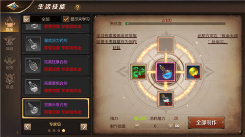 1、生活技能当中制作生活道具需要用到精力值,而精力值的消耗是根据制作道具的级别来决定,越高级的道具消耗的精力越多,最多可达到20,而我们的精力值上限为200,并且每日获取途径也比较单一,因此要合理分配精力值使用,才能做到高效制造。